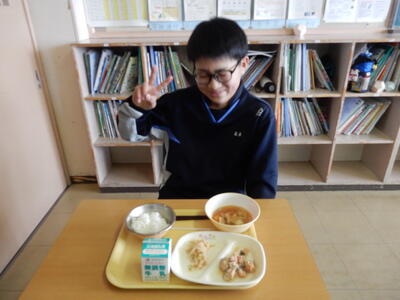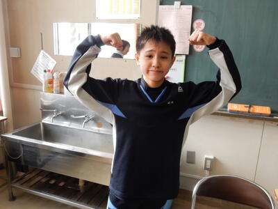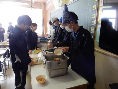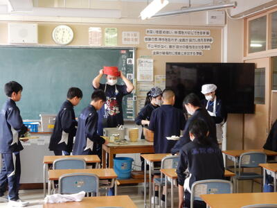 今日は1月27日の給食1年B組の給食準備の様子です。