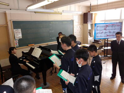 本日の音楽の授業に、研究会の先生方が来校され、授業の様子を参観されました。