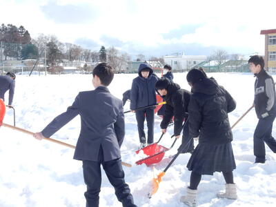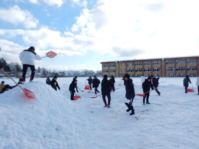 先日、赤川認定こども園の園児のみなさんが雪遊びを楽しめるように、2年生のボランティアメンバーが昼休みに協力して雪山づくりを行いました。スノーダンプやスコップを使って、みんなで協力して楽しそうに取り組む姿が見られました。短い時間ではありましたが、小さな子どもたちのことを思いながら活動する姿は、とても頼もしく感じました。