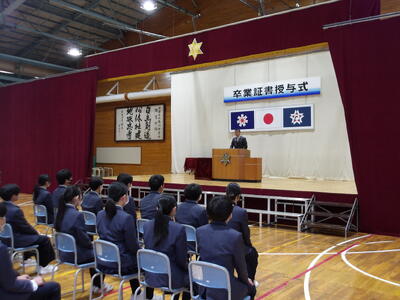 卒業式前日ということで疲れもある中、しっかりとした態度で会に臨んでいる3年生。とても立派でした。