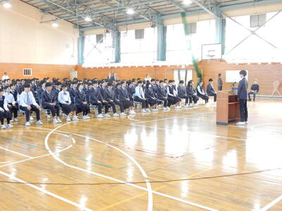 文化祭での素晴らしい合唱の成果もあってか、元気がよく明るい校歌の歌声が体育館に響き渡ります。