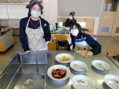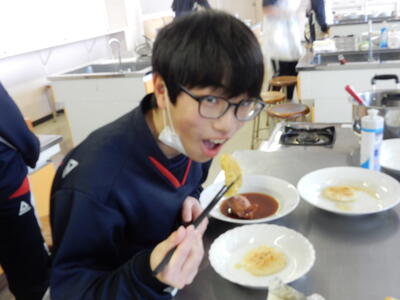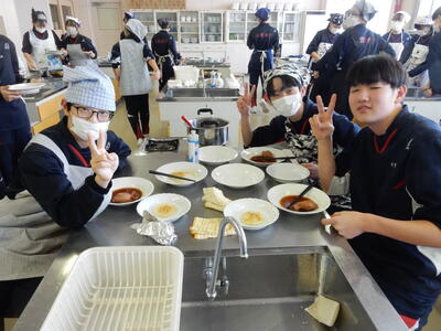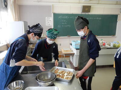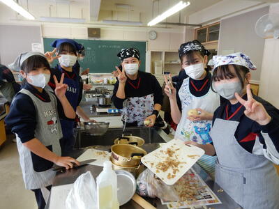 2年A組調理実習 投稿: kanri (11:13) 今日は2年A組が調理実習を行いました。今回の2年生の調理実習ではイカ飯、スイートポテトの他、いも餅にも挑戦しました。形を整え、焼き上げると教室に香ばしい香りが広がりました。笑顔あふれる楽しい実習になりました。 Tweet -