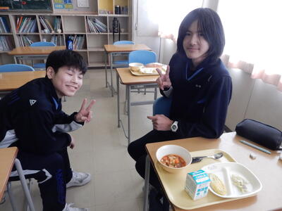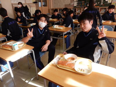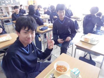 全国学校給食週間3 投稿: kanri (01/28) 1月28日のメニューは、ポークビーンズ、ほうれん草オムレツ、キャベツとマヨネーズのソテー、パン、牛乳、ミルメークココアでした。この日は1年C組の様子を紹介します。みなさん、しっかり手を合わせて元気よく「いただきます」。今日も笑顔で美味しくいただきました。 Tweet -
