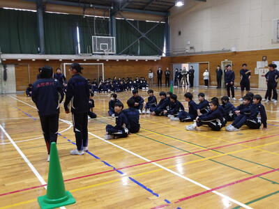 1年対2年 ドッジボール対決 投稿: kanri (13:25) 今日の昼休み、体育健康委員の企画で「中学1年対中学2年 ドッジボール対決」を行いました。 この日のために、体育健康委員が準備を進め、いよいよ試合開始。笛の合図とともに、体育館に大きな歓声が 響きました。仲間を応援する声が広がり、体育館は大盛り上がりでした。笑顔で仲間と声をかけ合いながらプレーする姿が印象的でした。 学年の枠を越えた交流の場となり、昼休みの時間があっという間に感じられました。 Tweet -