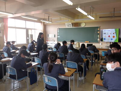 本日、外部講師の先生をお招きし、1年生を対象に食育の授業を行いました。