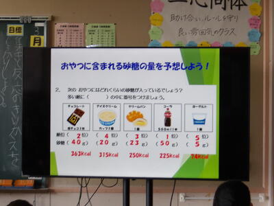 50gも砂糖が入っているの?!」と想像以上の数字に教室から驚きの声が上がりました。